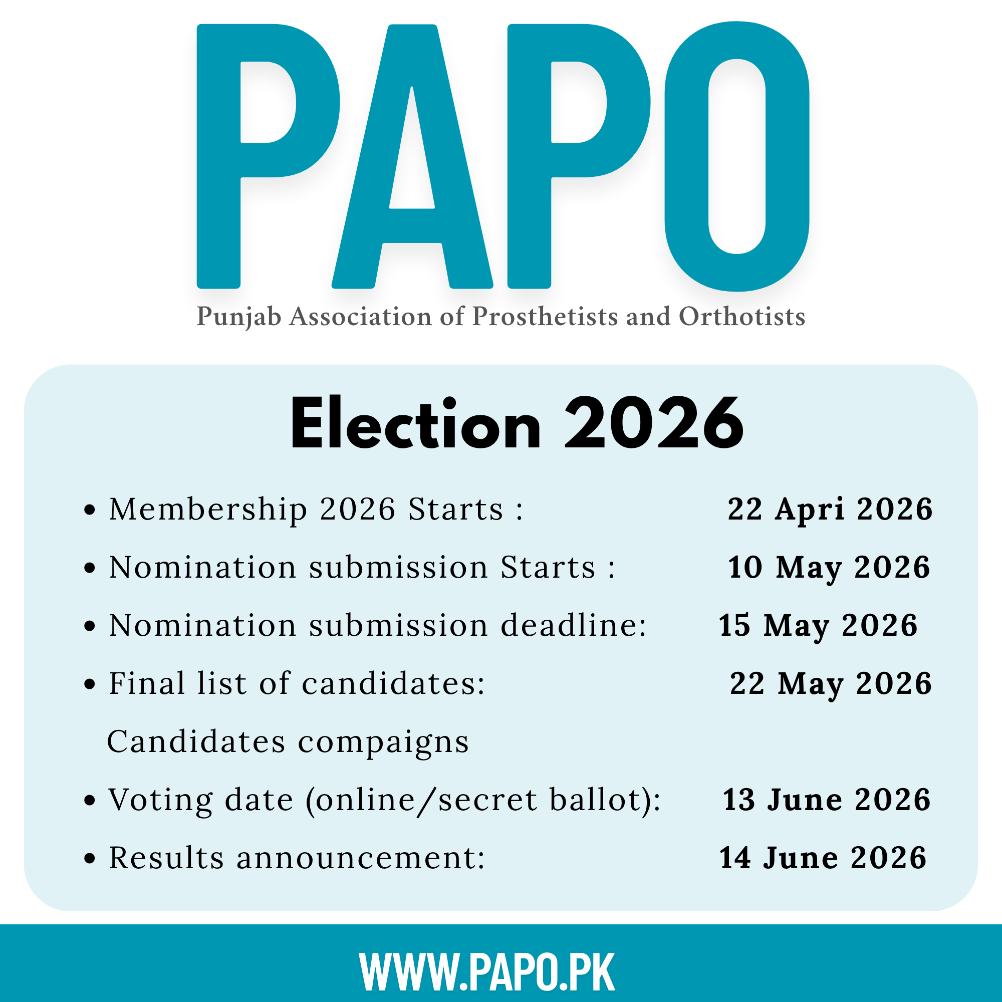 The upcoming elections of Pakistan Association of Prosthetists and Orthotists are scheduled to be held in June 2026.